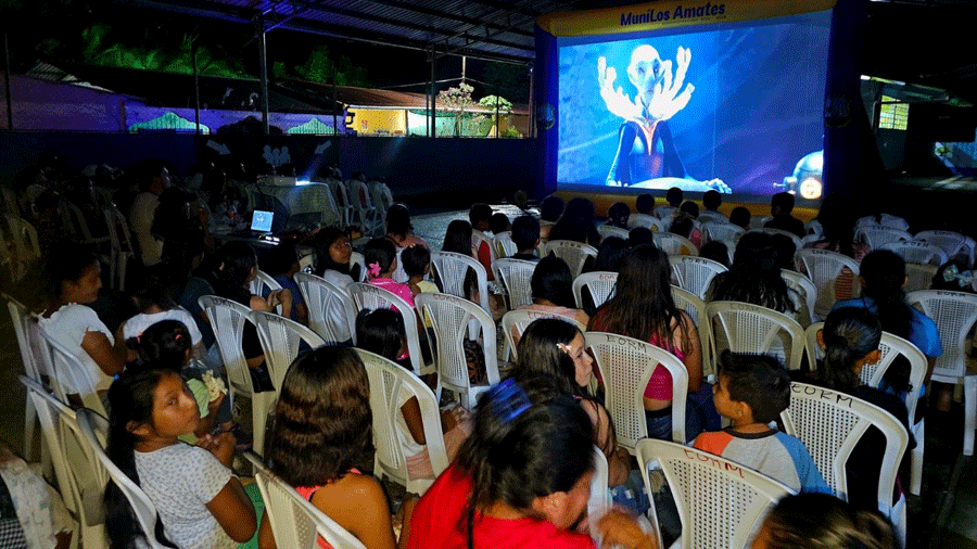 El equipo municipal se hizo presente la noche del pasado sábado 11 de octubre, en la cancha de la escuela de Aldea Cristina, donde los reyes y princesas del hogar disfrutaron su emociones con la película Lilo y Stitch.
